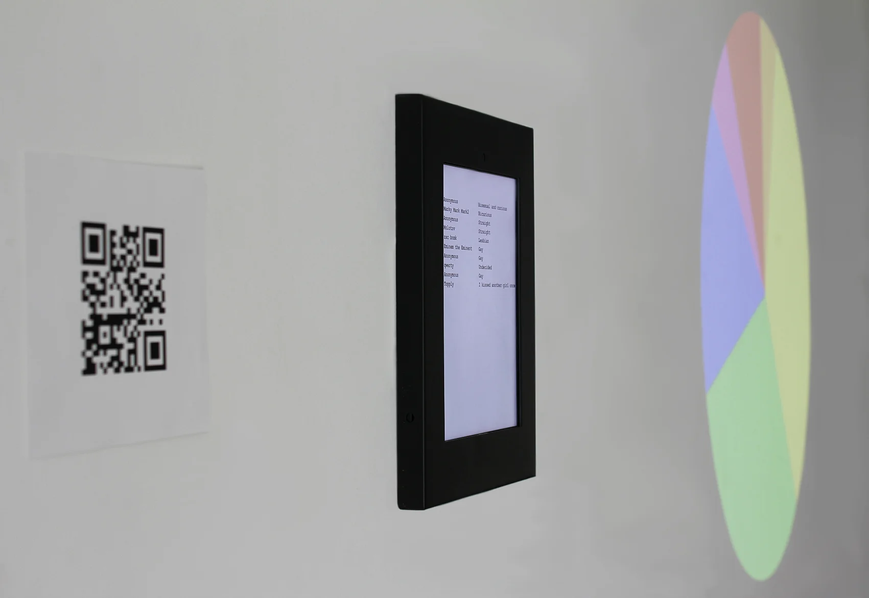 (interactive installation: QR Code, iPad with live data feed, projected chart with live data representation)
